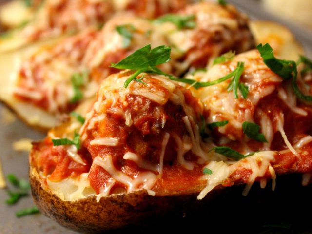 Meatball Marinara Stuffed Baked Potatoes